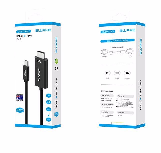 8Ware 8W-Usbchdmim Aluminum Casing Usb Type-C To Hdmi Cable M/M 24K Gold Plated Connector PVC Jacket Support Ultra HD 4K
