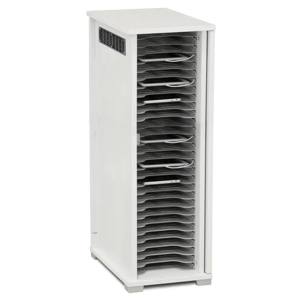 The Lyte 30 Single Door Tablet USB C charges 30 tablets or devices up to 11" screen size tablets, smartphones, mobile phones and handheld USB devices (including protective cases) via a 3 x 10 USB C Hubs. It has individual device compartments that store devices horizontally within a compact footprint. This unit delivers high-speed charge at the optimum rate. The Lyte 30 Single Door Tablet USB C never overcharges as it detects when the device battery is full providing trickle charge. It is equivalent to 30 x 10.5W USB C Charging Ports saving you space and power consumption, replacing extension cables and power sockets with one cable into the wall.